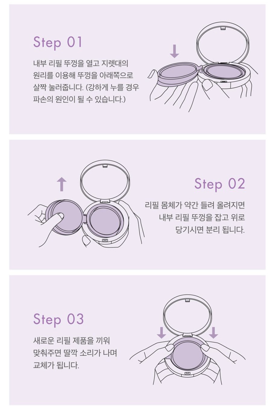 다음은 에센스 커버 팩트 리필 교환 방법입니다.