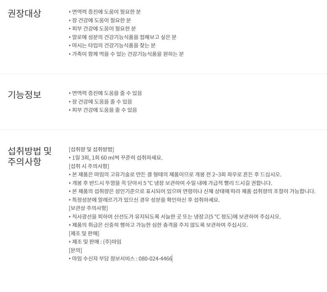 아마 대부분 아시겠지만 장건강에 도움을 줘서 피부도 좋아지고요 면역력까지 증진되는 건기식입니다.