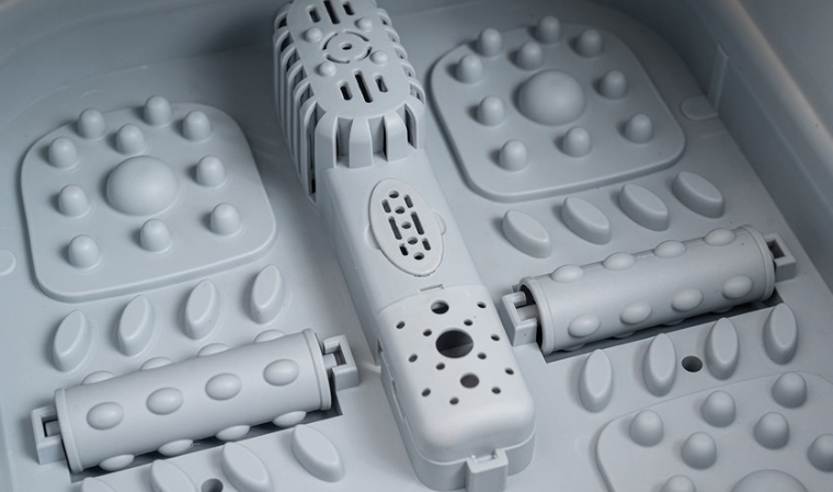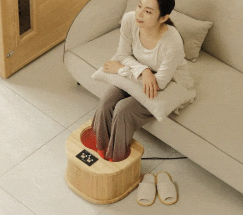 발을 부드럽고 따뜻하게 관리해 주는 족욕기. 허브, 알로에 등의 입욕제를 넣어 사용 가능한 입욕통.