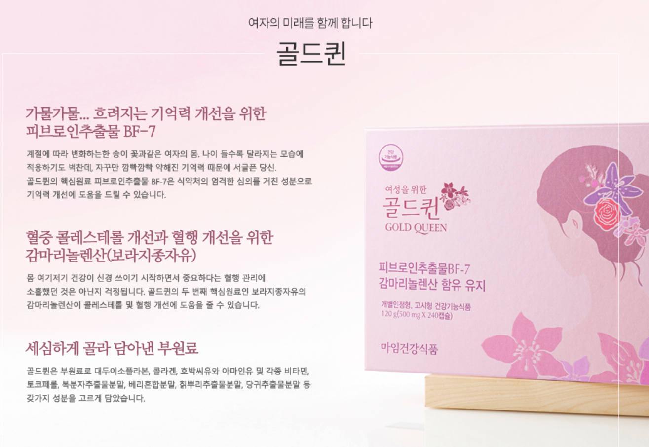 피브로인추출물 BF-7은 특허받은 성분으로, 한국의 기초과학연구원(KBSI)에서 개발된 것입니다. 이 성분은 뇌의 학습 및 기억 능력을 향상시키는 데 도움을 주는 것으로 알려져 있습니다.
