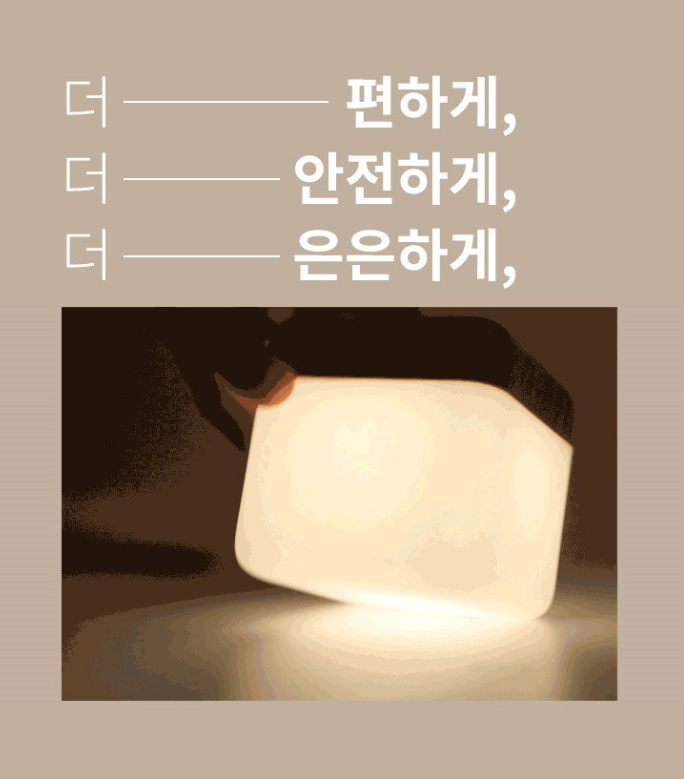 저는 이 제품을 선물로 받았는데, 정말 유용하게 사용하고 있어요. 이 제품은 정육면체 모양의 수유등으로, 뒤집으면 원하는 시간에 맞춰 자동으로 꺼지는 타이머 기능이 있어요. 밝기도 50%와 100%로 조절할 수 있어, 수유등, 무드등, 취침등, 독서등으로 다양하게 사용할 수 있어요. 충전식이며, 단 1회 충전으로 최대 40시간 사용이 가능해요. 우드와 다크우드 두 가지 컬러가 있으며, 심플하고 고급스러운 디자인이 매력적이에요.
