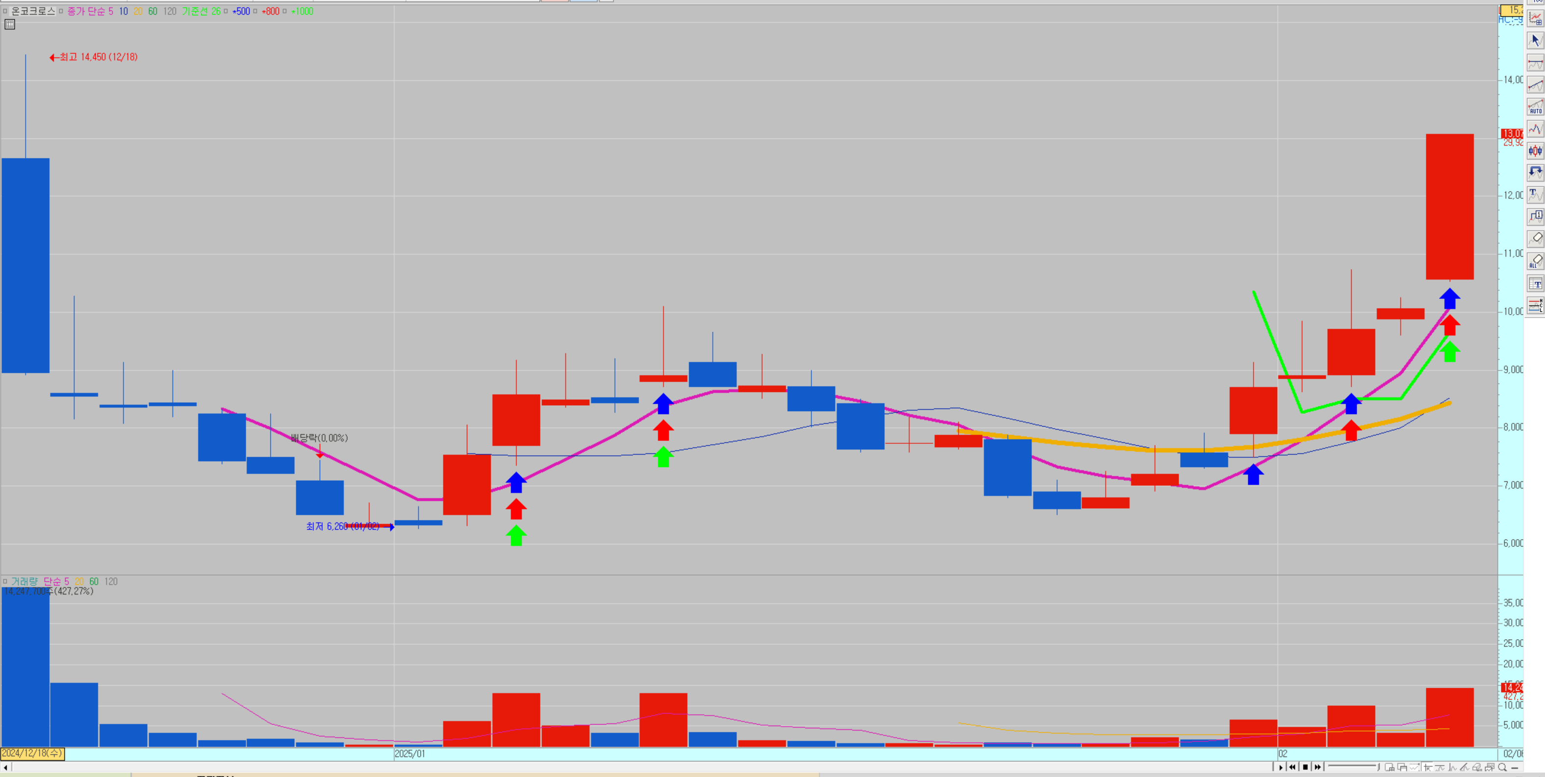 온코크로스(319660)는 AI(인공지능) 기반 신약 개발 및 약물 재창출(Drug Repositioning) 기술을 보유한 바이오테크 기업으로, 2015년 설립 이후 신약 후보 물질 탐색 및 기존 약물의 새로운 적응증 발굴을 핵심 사업 모델로 운영하고 있습니다. 2023년 8월 코스닥 시장에 상장된 이후, AI와 바이오 기술의 융합이 주목받으면서 투자자들의 관심이 집중되고 있고 오늘 상한가를 갔습니다.