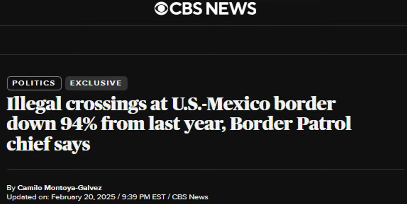 - 불법 국경 월경이 지난 1년간 94% 감소